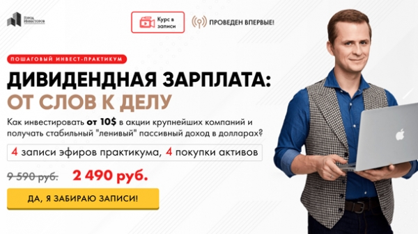 Программа:   1 Основные Принципы Дивидендной Стратегии + сколько нужно инвестировать каждый месяц. Результат: Вы познакомитесь с основами системы и выполните первые подготовительные шаги.   2 Покупаем дивидендных аристократов США, Канады и Европы и получаем доход в твердой валюте. Результат: На Вашем брокерском счёте появляются первые активы, которые будут регулярно платить Вам дивиденды.   3 Изучаем REIT(фонды недвижимости), чтобы инвестировать в лучшую мировую недвижимость от 50$. Результат: На Вашем брокерском счёте появляется еще один актив, который надёжно сохранит и приумножит Ваш капитал.   4 Собираем Дивидендный Портфель: на какие параметры следует смотреть, отбирая акции, REIT и ETF фонды для Вашего портфеля. Результат: Вы получаете пошаговый алгоритм по САМОСТОЯТЕЛЬНОМУ подбору в свой инвест-портфель активов, подходящих под Вашу цель.
