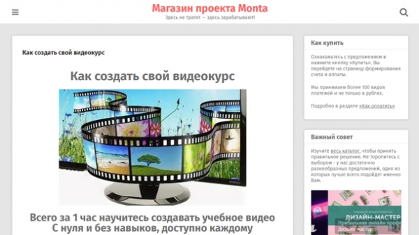 Всего за 1 час научитесь создавать учебное видео. С нуля и без навыков, доступно каждому! Научитесь делиться своими знаниями в видео-формате! Создавайте учебные видео, записывайте видеокурсы: без вложений, без технические трудностей, без оператора и персонала, без дорогостоящей аппаратуры, без аренды студии. Всего девять простых уроков уроков этого курса воплотят в жизнь ваши желания и вы сможете самостоятельно записывать видеокурсы без чьей-либо помощи. А приложенные к урокам материалы расширят их дополнительными возможностями. Для старта вам достаточно компьютера с веб-камерой или ноутбука. А если есть цифровой фотоаппарат или смартфон, то вы сможете записать видеокурс с их помощью. Все делается без помощников. На уроках все это будет вам продемонстрировано. Воплощайте в жизнь ваши идеи для видео Создавайте ваши первые работы и делитесь ими с вашим преподавателем (Светланой Молодежниковой), чтобы получить отклик, обратную связь и советы по улучшению ваших первых видеокурсов. Максимум возможностей за минимальное время Курс состоит из девяти основных уроков. Из них вы узнаете: как записать урок с экрана и отредактировать его; как записать живое видео с веб-камеры с помощью стандартной программы «Киностудия»; как записать живое видео без программы сразу в онлайн; как записать видео с помощью смартфона; как можно организовать хранение и раздачу курса по ссылке. В дополнительных материалах представлены: уроки по редактированию в бесплатном редакторе; урок по переносу видеоролика с смартфона на компьютер; два дополнительных способа записи живого видео; способ создания канала на YouTube с вашими видео и создания плейлиста. Получайте радость погружения в творческий процесс Вы научитесь создавать записи с экрана компьютера, а также научитесь записывать на видео как себя, так и процессы, которые захотите показать. Любые идеи и комбинации станут доступны. Например, можно показать интересные ролики про вязание, кулинарию, работы в саду, уход за домашними растениями, ремонтные работы и многое-многое другое, что потребует записи видео. Тысячи идей… Вы научитесь соединять несколько записей в один урок, редактировать записи, убирать из них лишние фрагменты, чтобы получать качественные и интересные видео. Сможете записать свой видеокурс по любой теме, загрузить его в интернет и создать ссылку, по которой ваши зрители смогут посмотреть и скачать. Зарабатывайте на ваших знаниях и видео Видеокурс может быть как платным, так и бесплатным. Бесплатный курс можно сделать магнитом для подписчиков и высылать ссылку на него после подписки. Кстати, саму рассылку можно очень просто сделать в группе ВКонтакте.