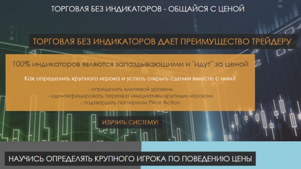 ТОРГОВЛЯ БЕЗ ИНДИКАТОРОВ ДАЕТ ПРЕИМУЩЕСТВО ТРЕЙДЕРУ:   100% индикаторов являются запаздывающими и «идут» за ценой Как определить крупного игрока и успеть открыть сделки вместе с ним? — определить ключевой уровень — идентифицировать перехват инициативы крупным игроком — подтвердить паттерном Price Action