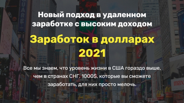 Зарабатывай, как Американец, сидя дома на своем диване. Без знания английского, из любой точки мира, в любое свободное время, с любого устройства подключенного к интернету. Где и сколько нужно работать? Работать можно из любой точки мира, с любого устройства, которое подключено к интернету. В любое удобное для вас время, столько, сколько вы захотите, нет никаких ограничений. Но помните — халявы тут нет! То сколько вы заработаете напрямую зависит от того, сколько времени будете уделять работе. Платят действительно хорошо — за день можно заработать больше 100$. Сколько зарабатывают в США? Привожу сравнительную таблицу зарплат, чтобы вы увидели разницу. И не пугались сумм в 1000-2000$, которые вы сможете заработать по методу «Заработок в долларах 2021». Для зарубежных работодателей, это не большие выплаты, а для нас 1000-2000$ в месяц — хороший заработок. Не владеете английским? Нет проблем! Работать мы будем в браузере со встроенным переводчиком, так что английский знать не обязательно. Вся информация, которая нам понадобится будет автоматически переводится на русский или другой язык, который вы выберите в настройках. Какие навыки нужны? Обучение уже прошли десятки человек разного возраста и с разным уровнем знания компьютера. Поэтому я могу с уверенностью сказать, что работать сможет любой пользователь интернета, независимо от возраста и образования. У вас получится! Как зарабатывать? Никаких хитрых схем! Я просто покажу, куда смотреть и помогу стартануть в этой сфере. На обучение уйдет 2-3 часа, и вы в деле. Не нужно никого приглашать, ничего продавать. Вы выполняете задания и получаете деньги, платят хорошо. Это реальная работа, за которую вам будут платить крупные зарубежные компании. Это не какой-то чудо способ заработка, с которыми вы сталкивались неоднократно. И я уверен, что если вы и заработали, то копейки. Я же хочу научить вас, как войти в востребованную, высокооплачиваемую нишу по заработку, которая еще не дошла до широких масс жителей стран СНГ. Я покажу, как без знания английского языка, работая из любой точки мира, в удобное для вас время, с любого устройства, которое подключено к интернету, зарабатывать хорошие деньги (1000-2000$). Также есть возможность карьерного роста, с выходом на легальный заработок до 5000$. Это хороший шанс кардинально изменить свою жизнь в лучшую сторону. Не упустите его!