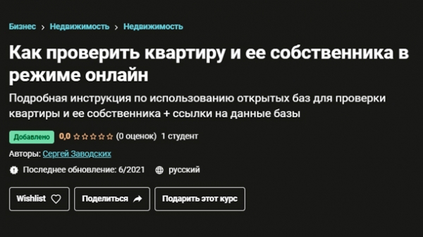 Продажник: https://www.udemy.com/course/proverka_kvartiry_onlajn/
