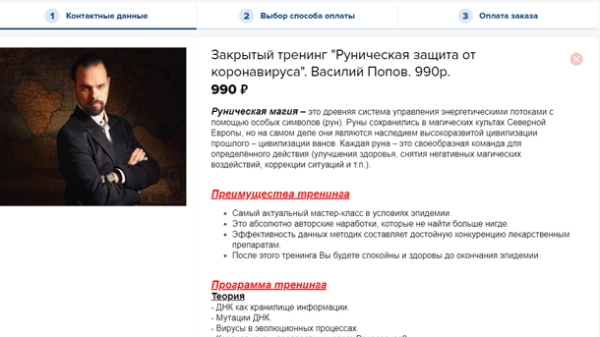 Руническая магия – это древняя система управления энергетическими потоками с помощью особых символов (рун). Руны сохранились в магических культах Северной Европы, но на самом деле они являются наследием высокоразвитой цивилизации прошлого – цивилизации ванов. Каждая руна – это своеобразная команда для определённого действия (улучшения здоровья, снятия негативных магических воздействий, коррекции ситуаций и т.п.). Преимущества тренинга: Самый актуальный мастер-класс в условиях эпидемии. Это абсолютно авторские наработки, которые не найти больше нигде. Эффективность данных методик составляет достойную конкуренцию лекарственным препаратам. После этого тренинга Вы будете спокойны и здоровы до окончания эпидемии. Программа тренинга Теория — ДНК как хранилище информации. — Мутации ДНК. — Вирусы в эволюционных процессах. — Коронавирус – предвестник нового Ренессанса? Практика — Рунескрипт «Переработка негатива». — Рунескрипт «Защита от коронавируса». Данный тренинг позволит Вам: — Сохранять спокойствие духа на протяжении всего периода пандемии и карантина; — Поддержать работу иммунитета и уровень здоровья на высоком уровне; — Освоить техники, которые позволят выстроить эффективную защиту против вирусных инфекций.