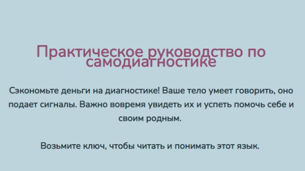 1. Запах тела и дыхания: — Запах тела — Запах тела и болезнь — Запах изо рта и болезнь — Натуропатические средства против запаха пота — Диагностика отравлений и болезненных состояний по запаху тела — Запах фекалий — Запах из влагалища — Состояния, усиливающие потливость 2. Самодиагностика по языку: — Цвет языка — О чем говорит налет на языке — Бороздки на языке — На что еще обратить внимание 3. О чем говорит КОЖА: как по коже понять каких микроэлементов не хватает организму. 4. Самодиагностика по НОГТЯМ. 5. Самодиагностика по ВОЛОСАМ. 6. Самодиагностика по параметрам ТЕЛА. 7. На ЧТО ЕЩЕ обратить внимание. 8. БАЗОВЫЕ НУТРИЦЕВТИКИ. Варианты саплиментации для поддержания здоровья.