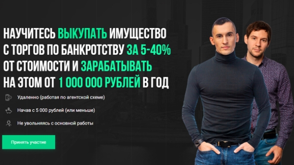 Описание основных модулей: МОДУЛЬ №1: Торги по банкротству! Что это за зверррь? МОДУЛЬ №2: Типы имущества и правильный анализ объектов МОДУЛЬ №3: Эл. подпись и агрегаторы для поиска лотов МОДУЛЬ №4: Все про работу с конкурсным управляющим и осмотр лотов МОДУЛЬ №5: Агентская схема или как зарабатывать без вложений МОДУЛЬ №6: Участие в торгах. Как подать заявку, чтобы ее не отклонили МОДУЛЬ №7: Где найти клиента и как делать его постоянным МОДУЛЬ №8: Победная стратегия участия в торгах. Как снимать любые обременения МОДУЛЬ №9: Как правильно писать объявления (готовые шаблоны). Готовые скрипты общения с клиентом и техники продаж