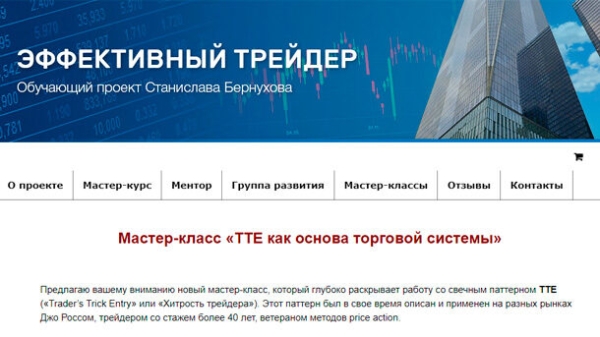 Предлагаю вашему вниманию новый мастер-класс, который глубоко раскрывает работу со свечным паттерном TTE («Trader’s Trick Entry» или «Хитрость трейдера»). Этот паттерн был в свое время описан и применен на разных рынках Джо Россом, трейдером со стажем более 40 лет, ветераном методов price action. Сегодня Джо Росс и его ученики зарабатывают тысячи долларов ежедневно, используя только один этот паттерн. Один трейдер из Германии совершил около 50 прибыльных сделок подряд, используя TTE при торговле фьючерсом на индекс DAX и валютами. Почему «TTE» так эффективен? Он очень прост – на графике любого размера (таймфрейма) вы сможете находить торговые ситуации с использованием этого паттерна. Решение приходится принимать быстро, поэтому у трейдера нет времени анализировать сложные построения; Он позволяет находить вход таким образом, чтобы практически сразу ваша позиция вышла в «бумажную» прибыль, после чего вы можете забрать эту прибыль полностью либо частично, а также уменьшить размер первоначального стопа; Вы можете торговать с использованием TTE на любых рынках – Forex, фьючерсах, акциях, CFD. Сам паттерн очень простой, и вы легко можете найти его описание в сети. Итого, на мастер-классе детально разбираются следующие вопросы: Как строится паттерн TTE? Какие модификации паттерна встречаются на рынке Forex? Какие признаки использовать для фильтрации входов? Как рассчитать цели при торговле на больших таймфреймах используя формулу?
