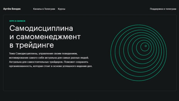 ‍Артём Бендак — частный трейдер и инвестор. В 2020 году провел публичный марафон, на котором добился 105% доходности (чуть больше 2 млн) за 48 торговых сессий на глазах у многотысячной аудитории.   Курс будет полезен самостоятельным трейдерам. Человек неструктурированный не беспокоится о неумении управлять самим собой, он давно в этом положился на удачу и боится прибыли больше, чем собственных убытков. Именно поэтому такое большое количество людей теряет деньги на рынке.   Программа курса:   1. С чего начинается Трейдинг Доходность от трейдинга. Рыночные ожидания, что сейчас находится в цене?   2. Самодисциплина Внутридневная работа (подготовка, статистика, диапазон, торговый план).   3. Сопротивление развитию, как фактор выживания Роль технического анализа в торговле. Роль фундаментального анализа в торговле. Роль графического анализа в торговле.   4. Самоменеджмент Риск-менеджмент позиций как фундамент Вашей работы.   Пройдя курс: — Научитесь структурировать свой подход в торговле. — Перестанете играть в игру «верю/не верю» и надеяться на удачу. — Научитесь управлять статистикой. — Узнаете как сочетаются инструменты анализа. — Сможете выстроить систему риск-менеджмента, которая станет фундаментом для успешной работы донор.