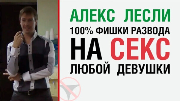 Видео: 4 часа Запись с закрытого тренинга Алекса Лесли: – Стиль “Одного Слова” – как при помощи всего одного слова можно познакомиться с девушкой и быстро перейти к сексу; – Фишки по преодолению женского негатива; – Места которые можно использовать для быстрого секса с девушкой; – Разбор классических фишек прожима девушки на секс; – Лучшие фишки для быстрого секса в машине. Демо тренинга: