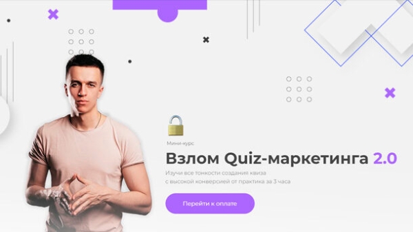 Программа курса:   Урок 1. Что такие Quiz-маркетинг. 5 причины принимать трафик из инстаграм/фэйсбук через Quiz в 2021 году. Урок 2. 2 вида маркетинговых квизов (разбор). Урок 3. ТОП-10 жирных ниш для генерации лидов через квиз-сайты и трафика из Инстаграм/Фэйсбук. Какие ниши не подходят для квиз-маркетинга. Урок 4. Анатомия квиза. Принципы создания конверсионного квиза. Урок 5. Анализ конкурентов по квиз-маркетингу. Палим рабочие квизы, креативы и офферы. Урок 6. Создаем свой первый квиз. Урок 7. Создаем статические креативы для квиза. Урок 8. Создаем видео креативы для квиза (пинтерест). Урок 9. Установка пикселя и настройка конверсий на квиз. Запускаем рекламную кампанию. Урок 10. Подтверждение домена на Фэйсбук. Урок 11. Установка Яндекс Метрики. Урок 12. .Интеграция квиза с Телеграм. Урок 13. 14 ошибок при создании квиза, которые режут вашу конверсию. Урок 14. Фишка, для утепления входящих заявок. Урок 15. Партнерский заработок на квизах. Урок 16. Как я тестирую квизы и офферы. Урок 17. Интеграция AMO CRM с квизом. Урок 18. Разбор кейса (кабинет + квиз) межкомнатные двери. Урок 19. Разбор кейса (кабинет + квиз) кровля. Урок 20. Разбор кейса (кабинет + квиз) кухни под заказ. Урок 21. Разбор кейса (кабинет + квиз) рольшторы. Урок 22. Собираем квиз на услуги таргетолога и получаем качественные заявки + разбор кабинета.