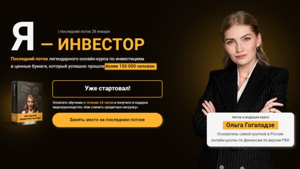 Для кого этот интенсив:   — тем, кто хочет научиться инвестировать, но постоянно откладывает или не знает, с чего начать. — тем, кто хочет защитить накопления от инфляции, а также боится нарваться на мошенников. — тем, кто хочет накопить на мечту, но совсем не умеет откладывать. — тем, кто хочет иметь дополнительный пассивный доход.   Программа Я – Инвестор 2.0:   Блок 1: Вводные знания для инвестирования. Блок 2: Налоги для инвестора. Блок 3: Анализ ценных бумаг для инвесторов. Блок 4: Составление инвестиционного портфеля. Блок 5: Покупка ценных бумаг. Блок 6: Ведение инвестиционного портфеля.   Получите полную и актуальную информацию об инвестициях в ценные бумаги и достижении своих целей с их помощью!   Вы:   Научитесь анализировать инвестиционные инструменты и получите уже готовую аналитику по отраслям и по каждой компании. Разберётесь в техническом анализе для инвестора и научитесь определять лучшее время для сделки. Узнаете алгоритм проверки портфеля и критерии того, что пришла пора избавляться от акций. Получите готовый финансовый план от эксперта в PDF. Откроете счёт для инвестиций по самым выгодным тарифам без переплат. Научитесь искать те активы, которые подойдут под вашу стратегию инвестирования. Сможете избавиться от «токсичных» активов, которые тянут ваш портфель вниз. Поймёте, как искать выгодные точки входа в активы при помощи технического анализа для инвестора. Получите все инструкции и узнаете, как законно сэкономить на налогах.