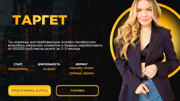 Программа курса: 1. Вводная часть. 2. Прорабатываем психологические блоки. 3. Изучаем основы таргетированной рекламы. 4. Facebook. 5. Изучаем правила и боремся с блокировками. 6. Исследуем целевую аудиторию. 7. Аудитории и интересы. 8. Создаём и улучшаем посадочную страницу для рекламы. 9. SMM и маркетинг. 10. Разрабатываем стратегию рекламной кампании. 11. Пишем продающие тексты и заголовки 12. Создаём рекламные креативы и учимся дизайну. 13. Уроки по созданию креативов в Figma. 14. Запускаем рекламу. 15. Конверсия. Пиксель. Utm-метки. 16. Анализ и масштабирование рекламной кампании. 17. Упаковываем кейс. 18. Строим личный бренд таргетолога и поиск платных клиентов. 19. БОНУС. Настраиваем рекламу в VK. 20. БОНУС. Таргет в ТИКТОК. 21. БОНУС. Как легализовать свою деятельность и не переплатить. 22. БОНУС. Маркетинговое агентство. 23. ЭФИРЫ.