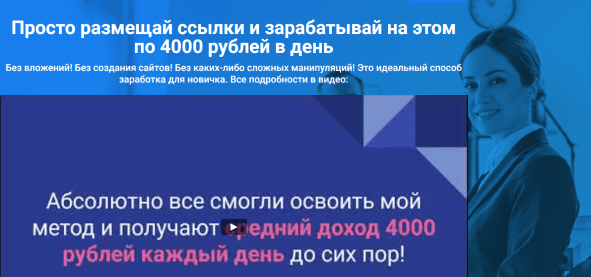 Что ты узнаешь? Просто размещай ссылки и зарабатывай на этом по 4000 рублей в день Без вложений! Без создания сайтов! Без каких-либо сложных манипуляций! Это идеальный способ заработка для новичка. Вы сможете выводить деньги каждый день на свою карту: VISA, MasterCard, МИР, Maestro, выпущенные в России и СНГ Что конкретно нужно делать, чтобы получить первые деньги? Для получения своих первых результатов Вам нужно проделать всего 4 простых шага: Заказать курс Сделать это предельно просто. Вам нужно нажать на кнопку и оформить заказ. Оплатить можно множеством способов, выбрав наиболее удобный для Вас. Курс Вы получите сразу после оплаты. Изучить его Обучающие материалы даны последовательно и расписаны простым и понятным языком. Разобраться сможет любой новичок. На изучение уйдет не более 1 часа, и можно сразу начинать работать! Разместить ссылку Вы берете свою ссылку для заработка на первом сайте, переходите на второй и размещаете её в 20 разделов. Просто копируете и жмете «вставить» 20 раз. С этим справится любой, от ребенка до пенсионера! Настроить вывод Как только ссылка будет размещена, Вам в течение нескольких часов будут поступать деньги. Вы сможете их выводить на любую банковскую карту России и стран СНГ. Скрытых комиссий и подводных камней нет!