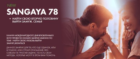 Что ты узнаешь?   В наше современное время совсем не просто встретить “родного” и близкого по духу и характеру для себя человека. Ведь самое сложное — это разделить с ним всю свою жизнь.. а для этого крайне важно, чтобы это была именно ваша вторая половина. По духу, по темпераменту, характеру и так далее. Чтобы этот человек был для вас — и другом.. Мы зачастую крайне эмоциональны, требовательны, даже надменны, поэтому допускаем массу ошибок, даже не подозревая этого. И набиваем шишки, наступаем на те же грабли , совершая массу ошибок, идя по жизни в своем поиске.. Я тоже через это прошел)) И поверьте, выводы сделал.. Так вот, чтобы упростить этот Ваш путь, помочь эзотерически приблизить вероятность и момент встречи “своего человека” — я решил разработать череду занятий, семинаров посвященных именно данной теме. Одно из них — данное САНГАЯ занятие №78. Однозначно все будет просто и понятно, без лишней воды и слов. Эффективные практики и методы. онлайн работа с Вами. И результаты не оставят себя ждать. Но конечно же, все в ваших руках.