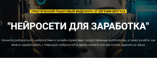 Начните разбираться с нейросетями и онлайн-сервисами с искусственным интеллектом, а также узнайте, как можно зарабатывать с помощью нейросетей в своем проекте или выполняя задания на заказ!   Кому будет полезен видеокурс — Начинающие. Вы изучите основы в теме создания контента в нейросетях, а также узнаете, как можно зарабатывать в Интернете — Работающие в найме. Вы сможете использовать нейросети для создания своих проектов в Интернете, либо создавать контент на заказ — Активные пенсионеры. Вы научитесь работать с нейросетями, узнаете, как их можно выгодно использовать для получения дохода Что вы получите в видеокурсе «Нейросети для заработка» Пошаговые видеоуроки Все видеоуроки записаны в формате скринкастов, чтобы вы без проблем могли повторить все действия, которые показывают в обучающих роликах Все необходимые ссылки Вам не придется искать информацию и материалы, все необходимые ссылки на основные онлайн-сервисы будут приложены к урокам Дополнительные материалы Вы получите специальные инструкции, чтобы вы могли подробнее разобраться с сервисами, которые будут использованы при работе Примеры в режиме реального времени Вы сможете увидеть весь процесс работы с нейросетями и искусственным интеллектом на реальных примерах, так что сможете просто повторить действия тренера и получить классные результаты!